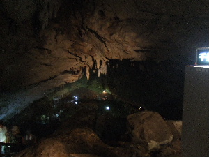 あまりに暑いので、地上の秋吉台に出るのはやめにして(行きに道を尋ねた売店の人が「今日歩いたら倒れます。」と脅かしたので)、秋芳洞の中をもう一度通って帰って来る。